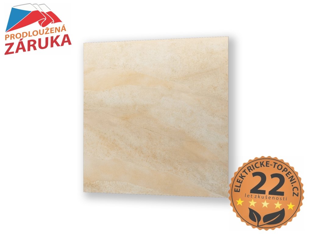 ECOSUN 300 CR Mirage je infrapanel ze slinuté keramiky, který věrně imituje přírodní kámen a nabízí estetické řešení pro náročné interiéry. Díky vzhledu a povrchové úpravě se hodí do reprezentativních prostor, jako jsou hotely, recepce, kanceláře, ale i do běžných domácností.
