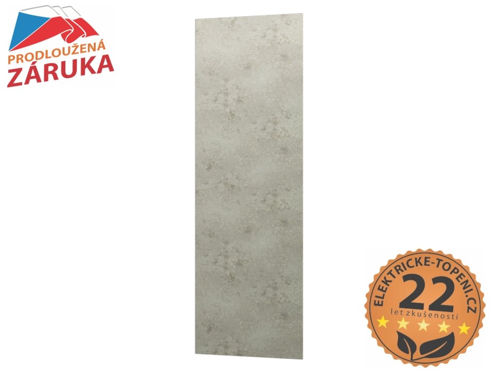 ECOSUN 500 CR Beton – panel 500 W ze slinuté keramiky. Infrapanely ECOSUN CR (CeRamic) představují kombinaci estetického povrchu a funkčního řešení vytápění určeného pro interiéry s vyššími nároky na vzhled.