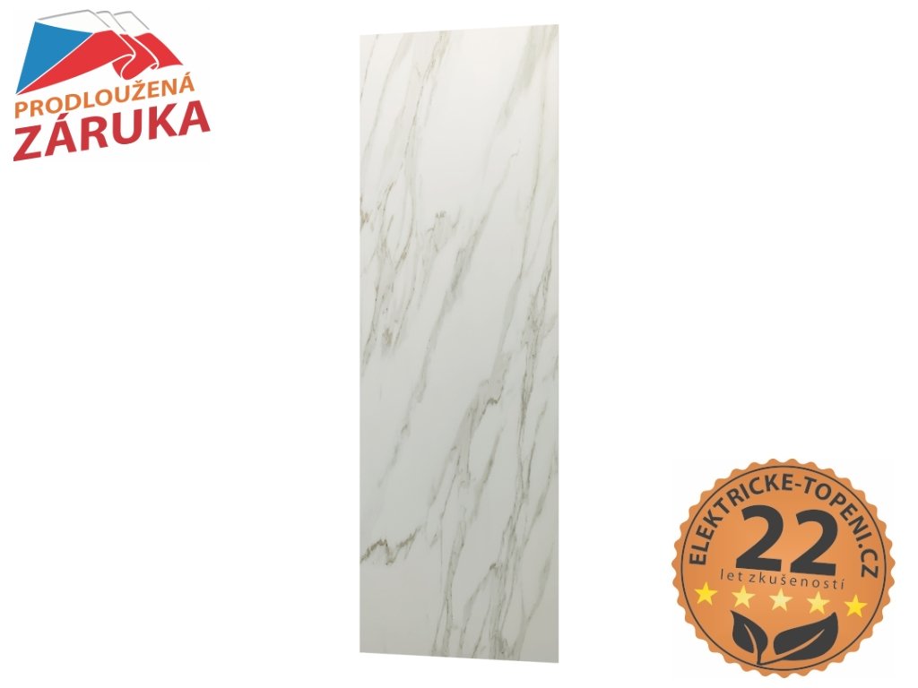ECOSUN 500 CR Calacatta je infrapanel ze slinuté keramiky, navržený jako estetická a funkční náhrada přírodního kamene. Díky vysoce dekorativnímu povrchu je vhodný do reprezentativních prostor, hotelů, recepcí, kanceláří i domácností, kde kladete důraz na design a pěkné provedení vytápěného interiéru.