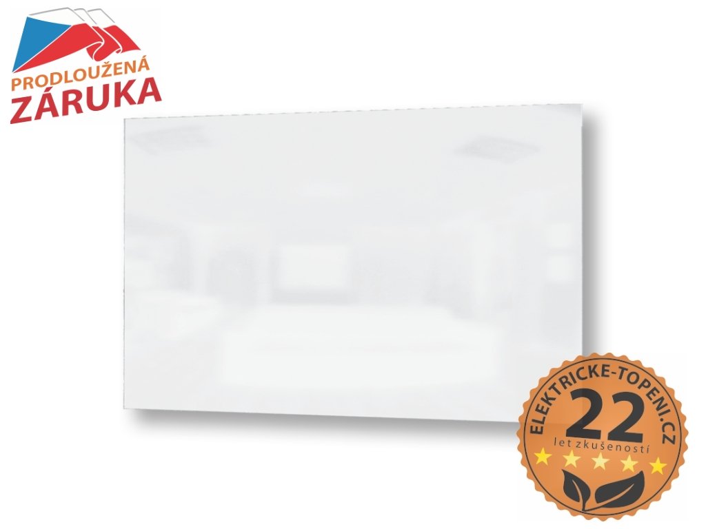 ECOSUN 850 GS White – skleněný sálavý panel v mléčně bílém provedení o příkonu 850 W. Systém ECOSUN GS spojuje jednoduchou a elegantní čistotu skleněné čelní plochy s výhodami sálavého vytápění.