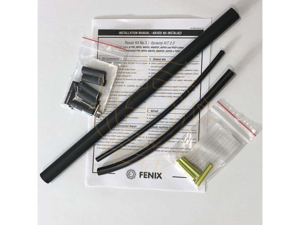 KIT č.3 slouží k opravě kabelů s opletením bez rozdílu výkonů. Je určen pro použití v okruzích MPSV, MAPSV, MADPSP, ADPSV, ADPS1P a pro rohože MST a MDT.