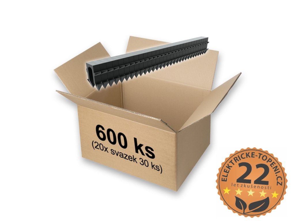 Praktické balení a způsob spojení do svazků usnadňují manipulaci při montáži a urychlují instalaci topného kabelu na polystyrenovou izolaci. Díky tomu se hodí pro profesionální montážní postupy i pro větší projekty.