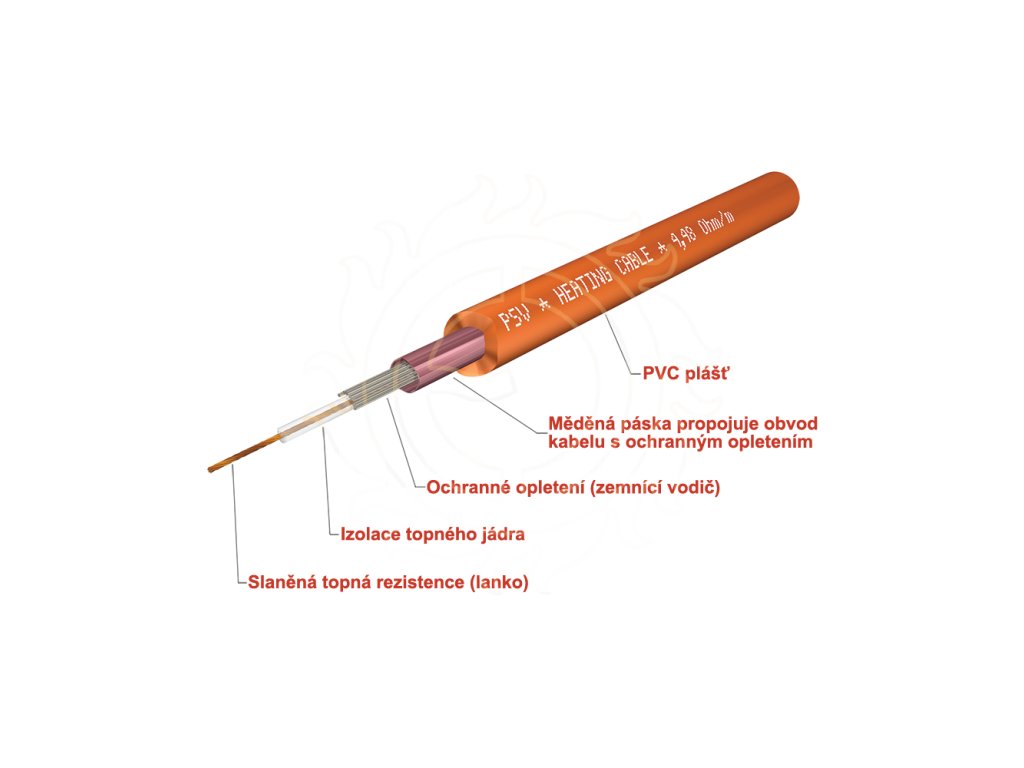 Konstrukce kabelu je založena na jednožilovém vodiči o průměru ø5 mm se slaněnou rezistencí; topné jádro je spleteno ze 7 drátků do pevného lanka. Taková konstrukce zvyšuje mechanickou odolnost okruhu a zajišťuje spolehlivý provoz při běžném mechanickém zatížení při pokládce i následném provozu.