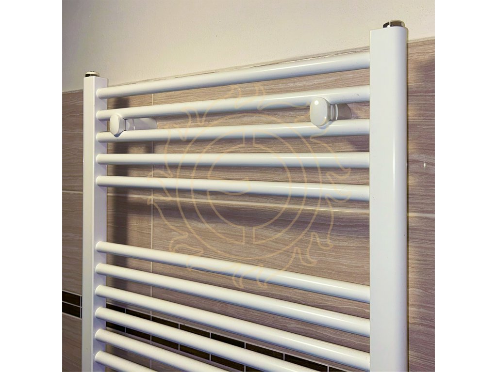 POZOR - trnové úchyty se vkládají mezi příčné trubky topného žebříku. Pokud sada slouží jako náhrada za původní úchyty, které byly třmenové (objímka přes jednu trubku), bude nutné topný žebřík posounout o cca 2 cm nahoru (nebo dolů), aby bylo možno využít stávající otvory ve stěně. U elektrických topných žebříků, připojených jen přívodní šňůrou, to nebývá problém, pokud je ale žebřík připojen na teplovodní systém, bude nutné otvory převrtat. Je nezbytné zkontrolovat také průměr a rozteč příčných trubek, aby trny topný žebřík spolehlivě zafixovaly.