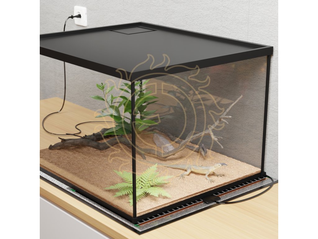POZOR: Pokud je vytápění provozováno bez dozoru, musí být teplota omezena vhodným termostatem se sondou umístěnou ve středu vytápěné plochy! Teplota nesmí přesáhnout hodnotu požadovanou jednotlivými druhy chovaných zvířat, maximálně však 60 °C. U folií umístěných pod nádrží je důležité zajistit dostatečný odvod tepla - pozor např. na výšku a složení substrátu na dně.