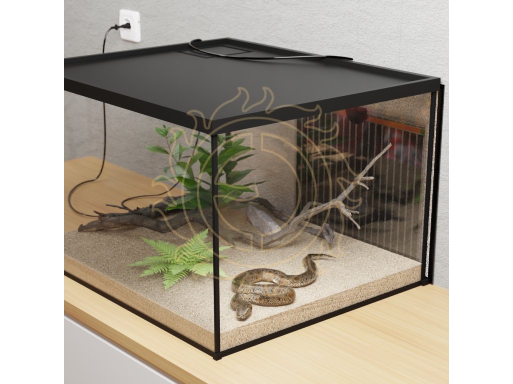 POZOR: Pokud je vytápění provozováno bez dozoru, musí být teplota omezena vhodným termostatem se sondou umístěnou ve středu vytápěné plochy! Teplota nesmí přesáhnout hodnotu požadovanou jednotlivými druhy chovaných zvířat, maximálně však 60 °C. U folií umístěných pod nádrží je důležité zajistit dostatečný odvod tepla - pozor např. na výšku a složení substrátu na dně.