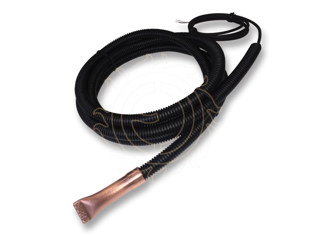 Záslepka CU na tr. oheb. 11,4/8,5 – měděná koncovka určená jako zakončení ohebné trubice („husí krk“) o vnějším průměru 11,4 mm. Slouží k bezpečnému vložení podlahové sondy termostatu do vedení a zajišťuje správné umístění sondy vůči podlahovému povrchu.
